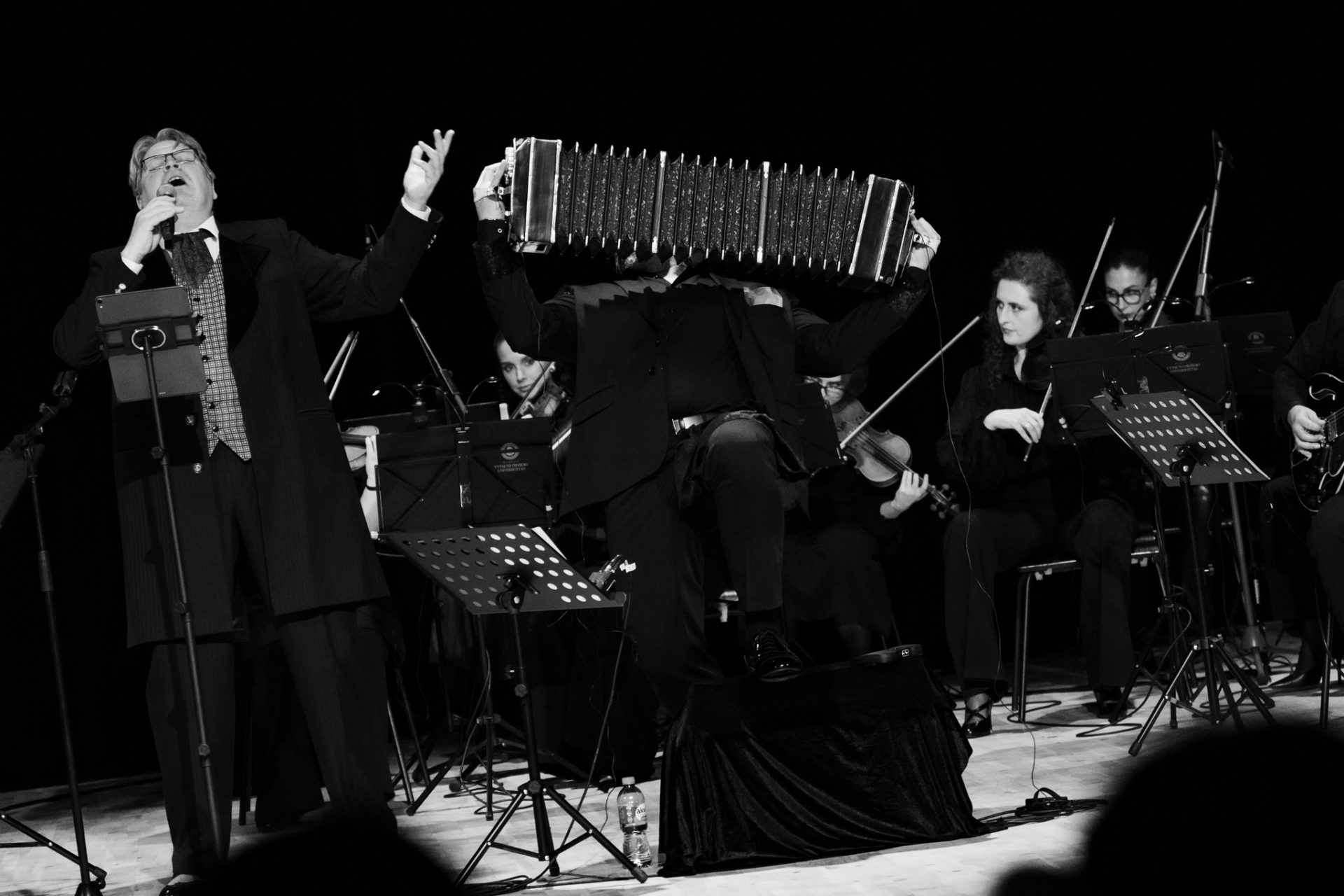 orkestru, ir su tango kvintetu, paties suburtu pagal ikoninės A. Piazzollos grupės pavyzdį: su